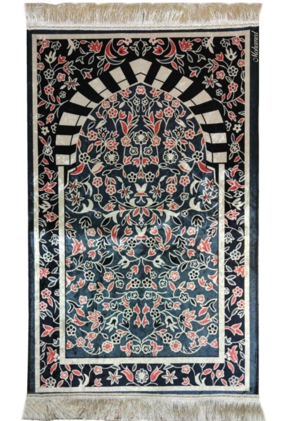 Grand Tapis de prière adulte couleur noir doré en velours brillant personnalisé avec le prénom de votre choix - REF. 39032 (23.00 €)