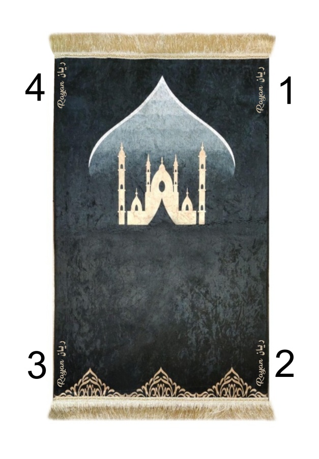 Recevez ce grand tapis de luxe (70 x 115 cm) avec dessous antidérapant. Très doux au toucher (velours) avec motif indiquant la direction de la qibla (La Mecque, pour ne pas mélanger les pieds et la tête).