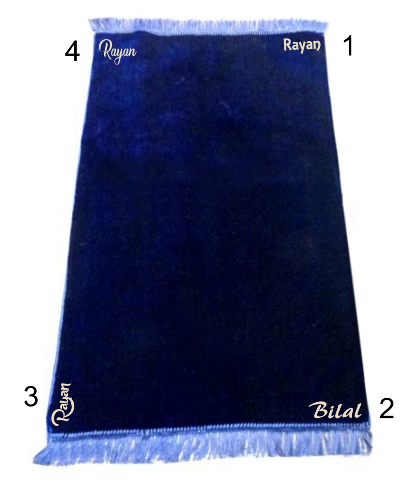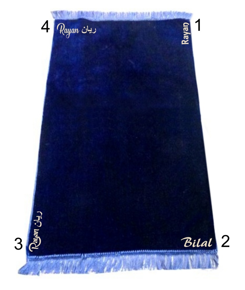 Tapis de prière adulte en velours couleur bleu uni sans motifs personnalisé avec le prénom de votre choix - REF. 39141 (16.90 €)