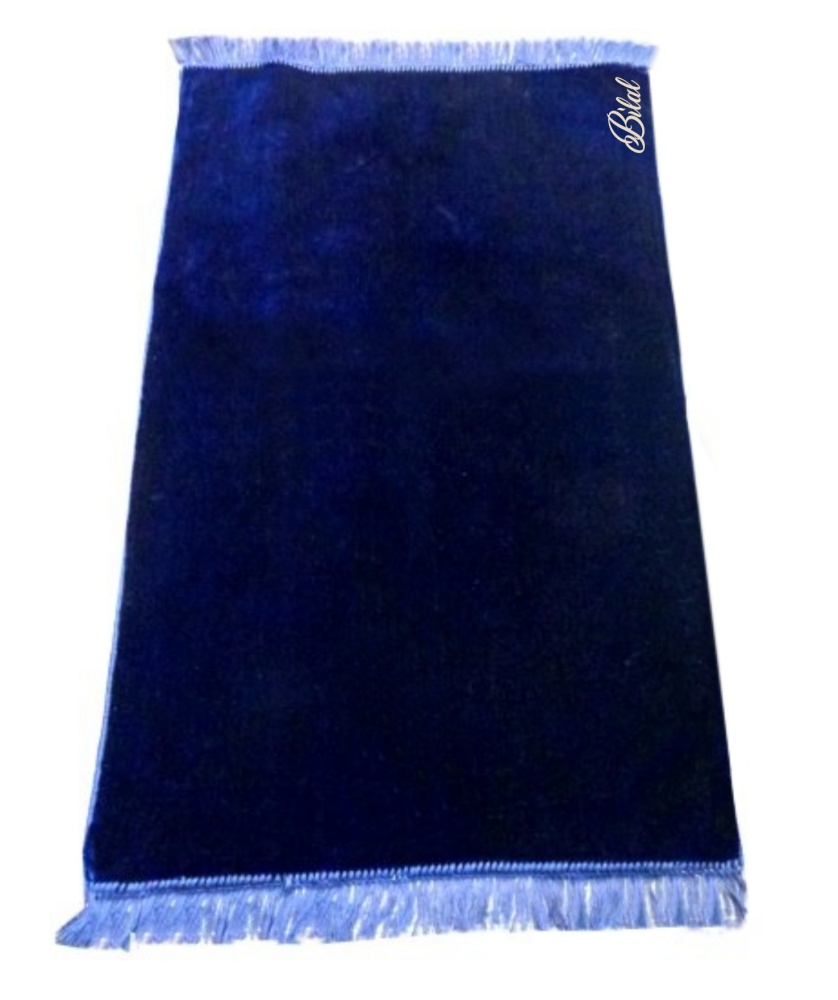 Tapis de priere adulte en velours couleur bleu uni sans motifs personnalise avec le prenom de votre choix