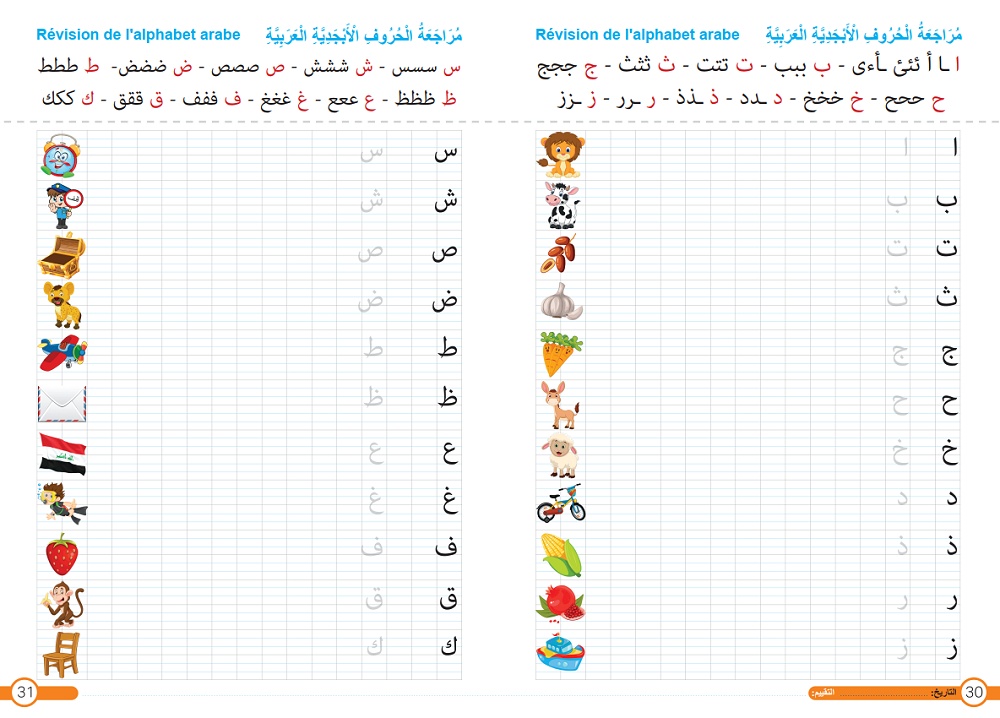 Ce magnifique cahier d’activités, au grand format, et aux pages colorées et attrayantes, où chacune est consacrée à une lettre, illustrée, elle-même, d’images attractives et de mots captivants, convient particulièrement aux écoles de langue arabe, mais aussi aux parents désirant enseigner - eux-mêmes - à la maison, les lettres et mots arabes à leurs petits bouts de chou.
