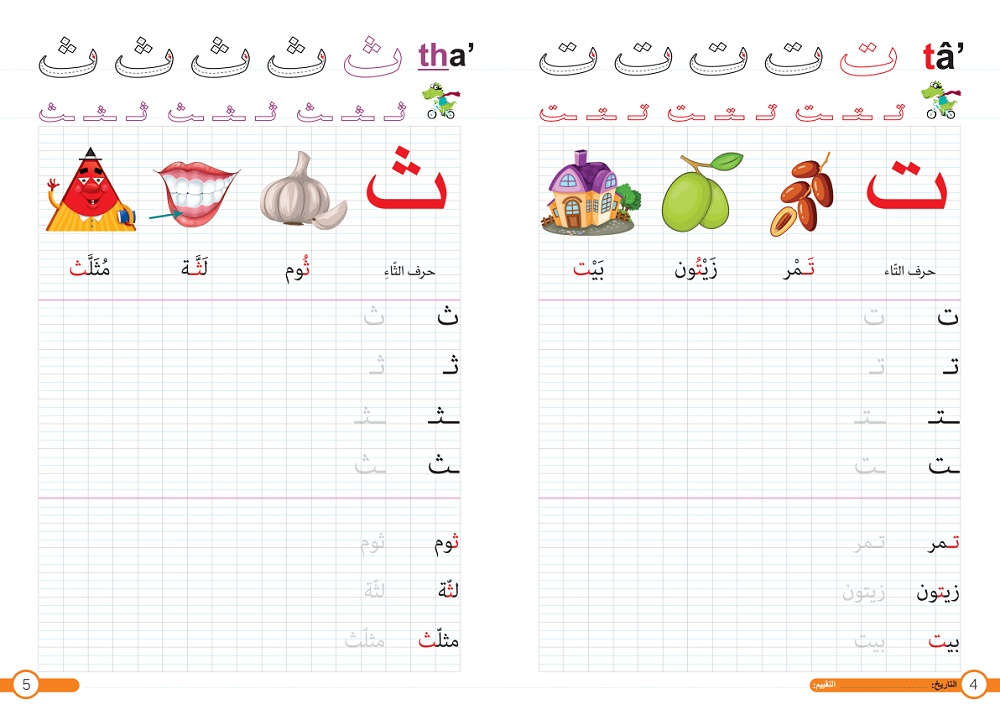 L’aspect esthétique du cahier n’enlève rien à sa précision. En effet, ses pages quadrillées et ses lignes d’écriture espacées, permettront à l’enfant de se familiariser avec les tracés précis de chaque lettre dans toutes ses graphies relatives à ses 4 positions (initiale, médiane, finale et isolée), avec des exemples concrets pour chaque cas, de même que des illustrations, tout en couleurs, pour chaque mot proposé.