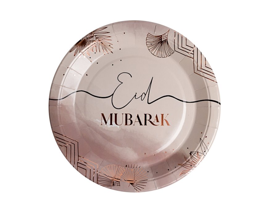 Assiettes "Eid Mubarak" - roses dorés (Rose Gold - Collection Laya) - Lot de 6 pièces Deco & Cadeau