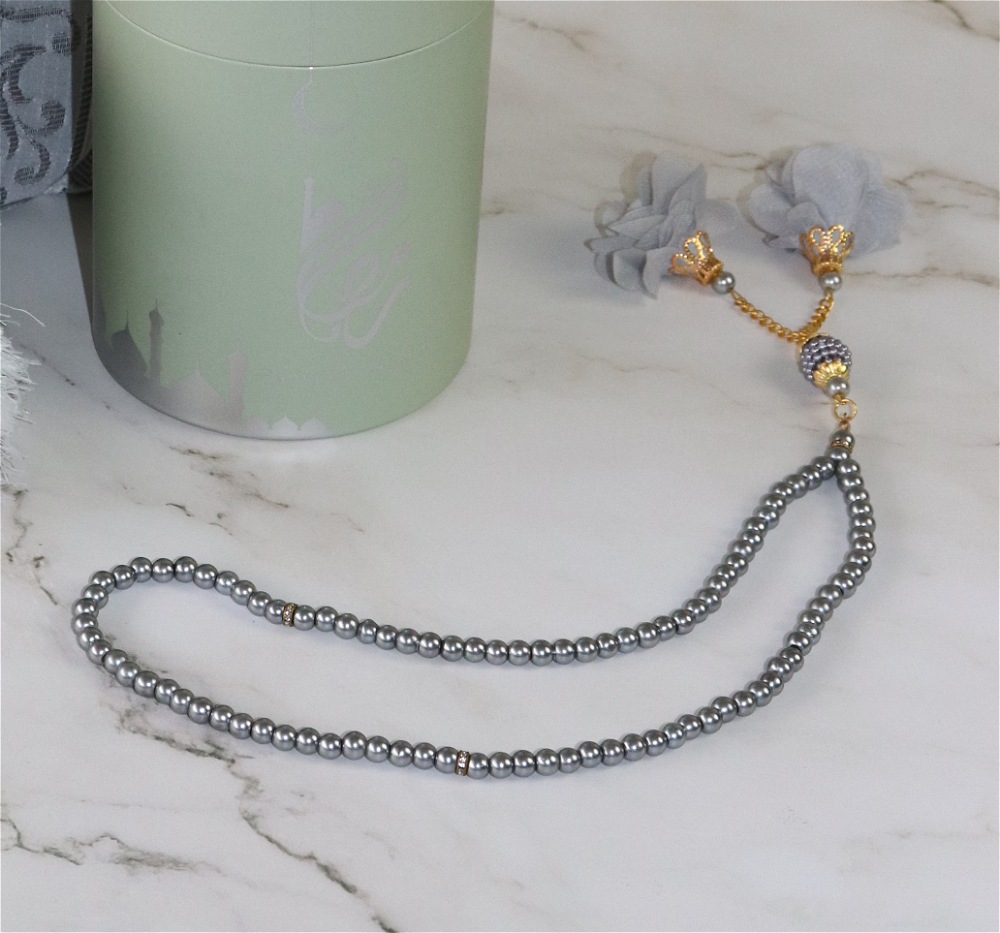 Coffret Cadeau Musulman doré : Tapis décoré brillant et Chapelet (Sebha) - Couleur Gris clair - REF. 35572 (16.90 €)
