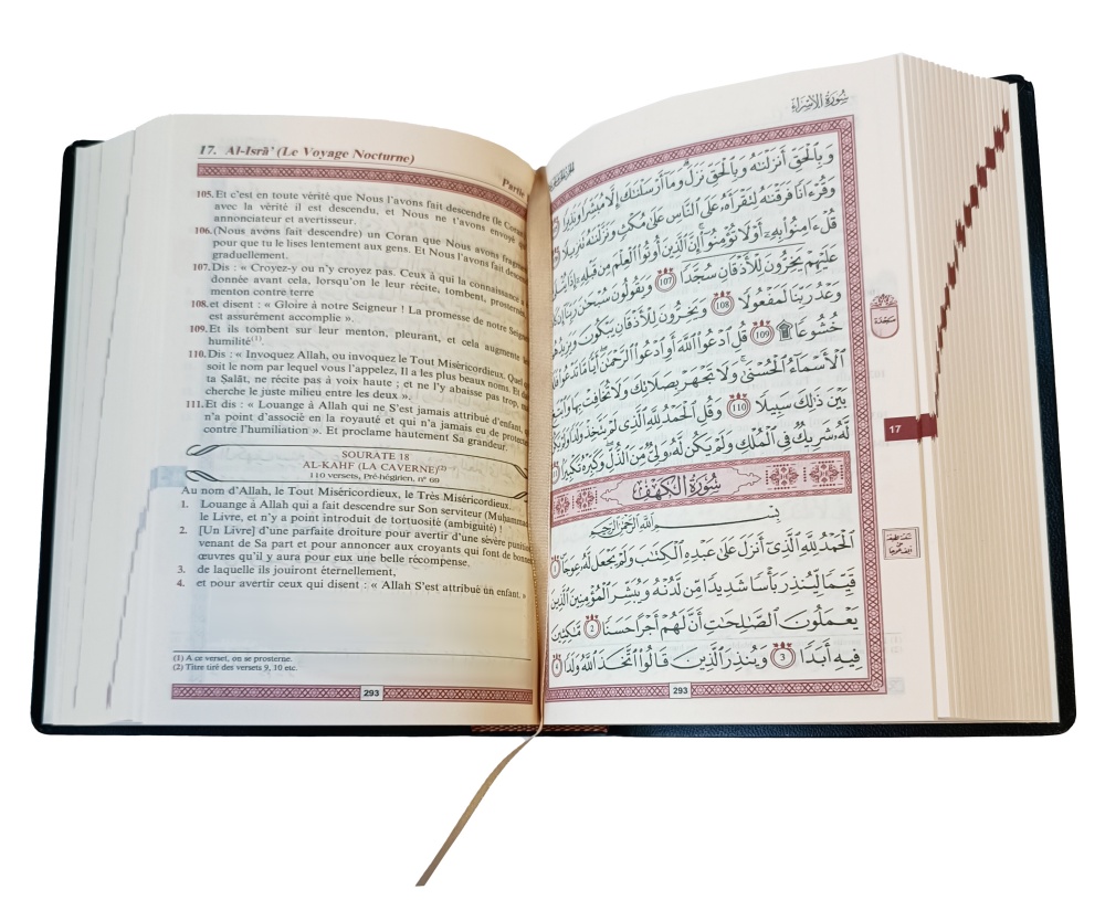 Cette nouvelle édition a un index des sourates visible sur la tranche du livre permettant un accès plus rapide au début de chaque sourate. Pour les sourates longues, permet de connaître visuellement le nombre de pages qu'il vous reste à lire pour finir la sourate.
