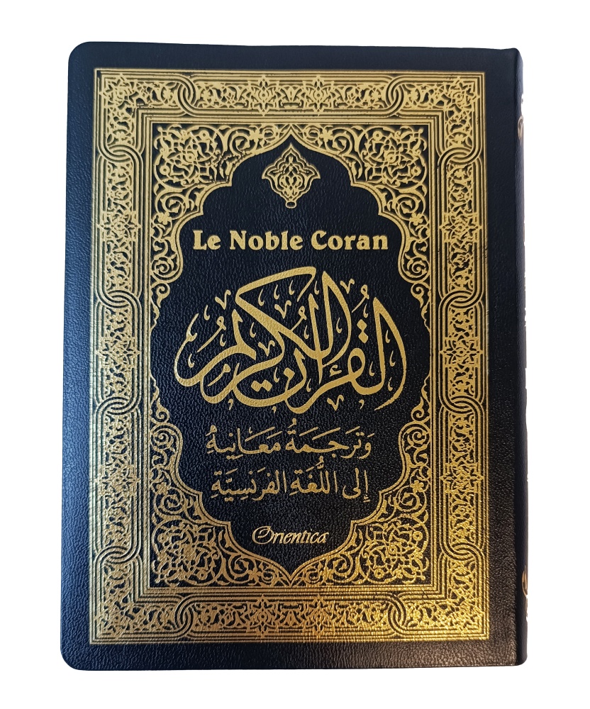 Le Noble Coran et la traduction française du sens de ses versets (bilingue français/arabe) - Grand format (21 x 28,50 cm) - Couverture rigide similicuir de luxe - Couleur Noir doré - REF. 36957 (35.00 €)