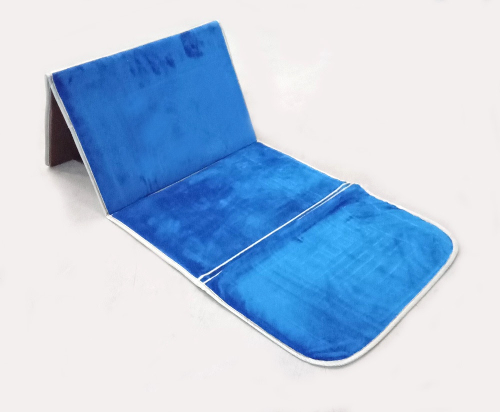 Tapis de priere pliable ultra confortable avec adossoir integre (dossier - chaise - support pour le dos pour s'adosser) avec sa sacoche - Couleur Bleu clair