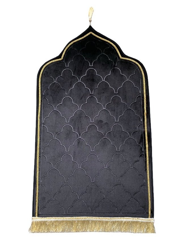 Tapis de prière de luxe doré pour adulte sous forme de mosquée (Mihrab) motif mosaïque - Couleur noir doré - REF. 39552 (14.90 €)