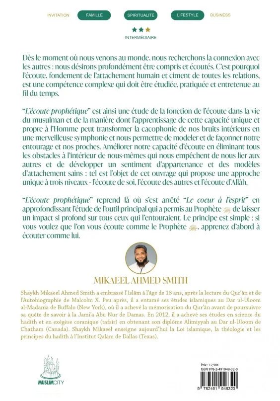 "L'écoute prophétique" reprend là où s'est arrêté "Le cœur à l'esprit" en approfondissant l'étude de l'outil principal qui a permis au Prophète de laisser un impact si profond sur tous ceux qui l'entouraient. Le principe est simple : si vous voulez que l'on vous écoute comme le Prophète (paix et salut sur lui), apprenez d'abord à écouter comme lui.