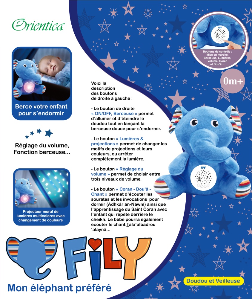 Fily : Mon elephant prefere - Doudou veilleuse coranique et invocations (Jouet-Peluche pour enfant musulman et bebe)
