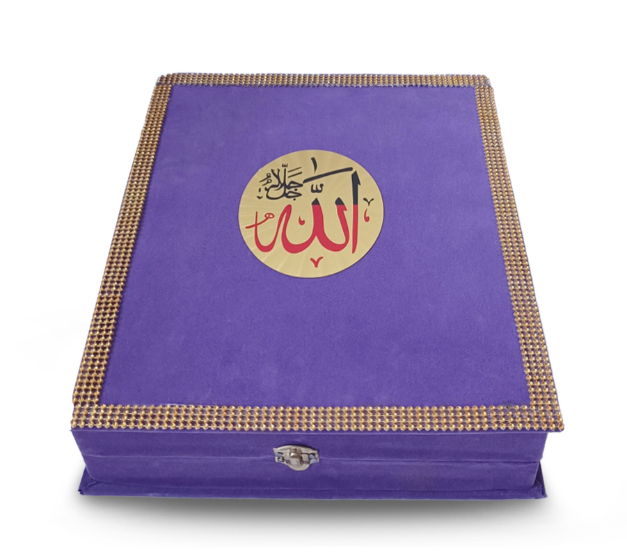 Grande boite en bois recouverte de velours de 5 cm d’épaisseur, vous pouvez y mettre même un grand Coran en arabe 17x24 cm ou des objets. Vous pouvez utiliser ce coffret également pour ranger vos bijoux ou autres effets personnels...