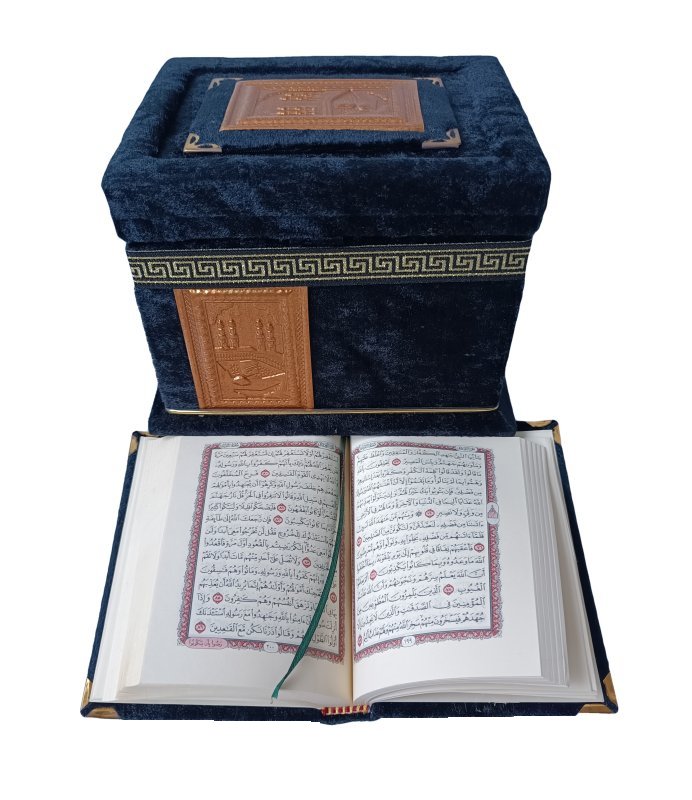 Coffret artisanal decoratif sous forme de Kaaba avec son Coran assorti (recouvert de velours)