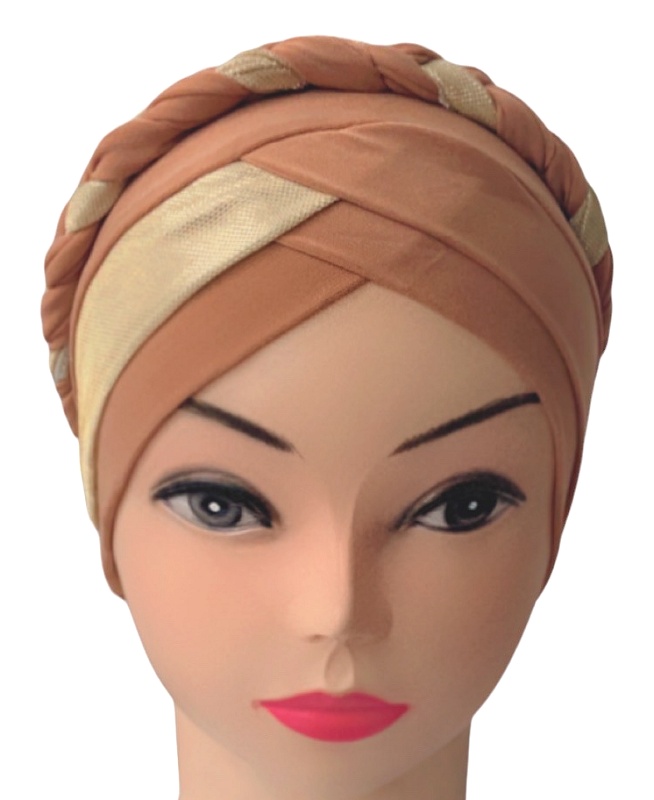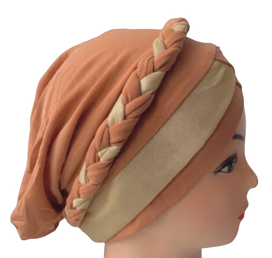 Bonnet hijab croisée à tresse pour femme - Couleur Caramel Vetement & Accessoire