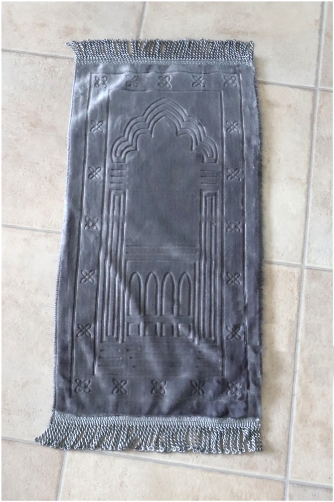 Tapis enfant très doux au toucher de type velours avec motifs discrets indiquant la direction de la qibla.
