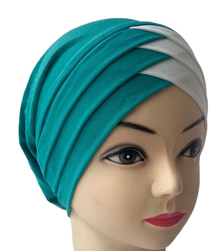 Turban bonnet croisé bicolore femme moderne - Couleur Vert et crème Vetement & Accessoire