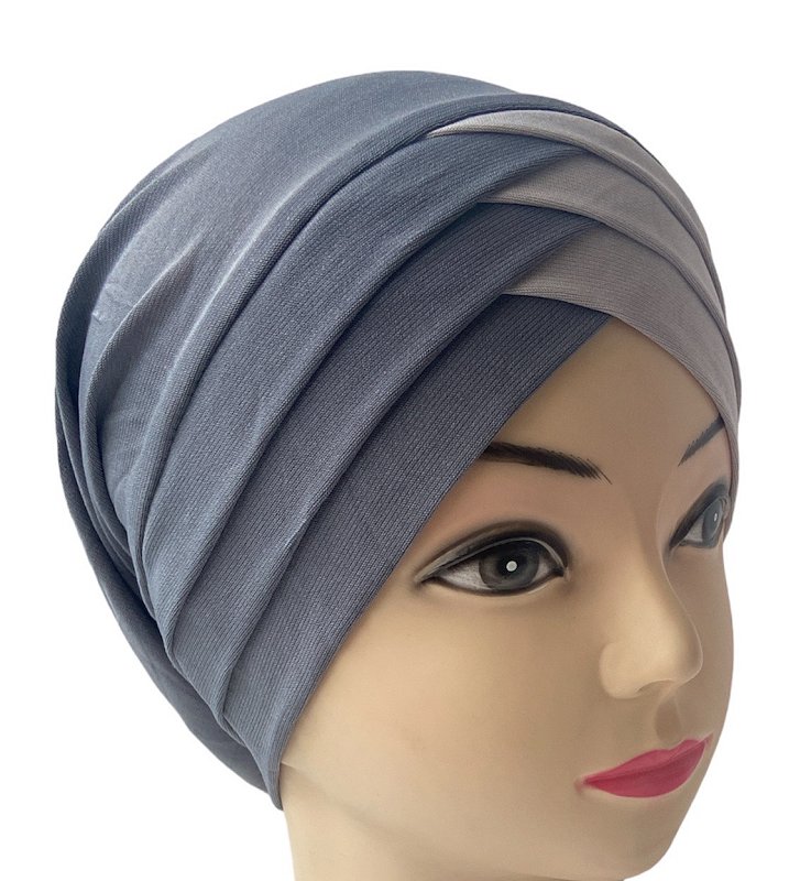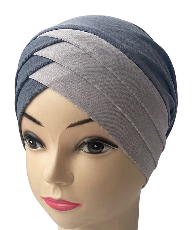 Turban bonnet croise bicolore femme moderne - Couleur Gris et Gris clair