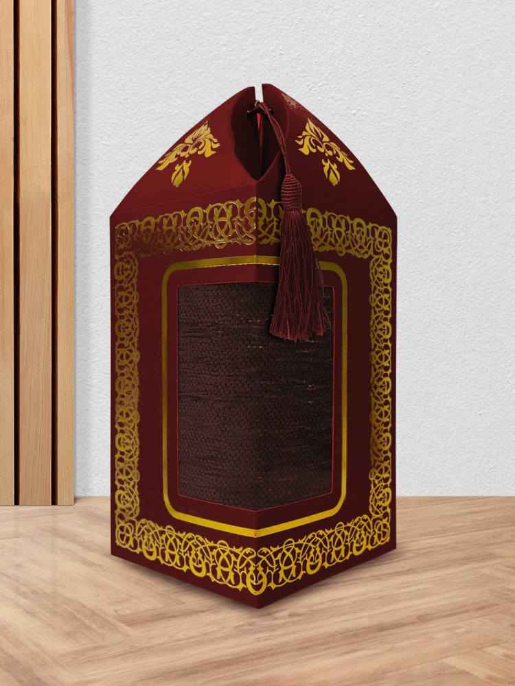 Boite doree avec pompon et son tapis assorti (idee coffrets cadeaux musulmans) - Couleur Bordeaux