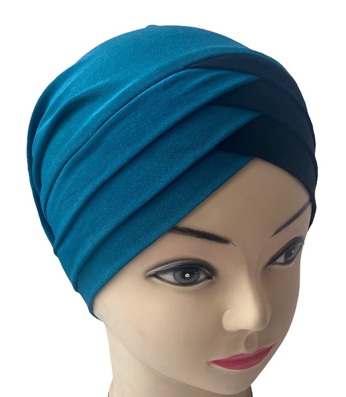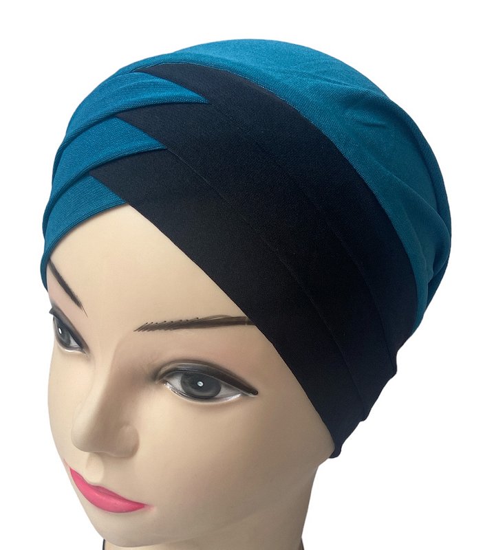 Bonnet hijab croisée à tresse pour femme - Couleur Bleu vert - REF. 39965 (4.90 €)