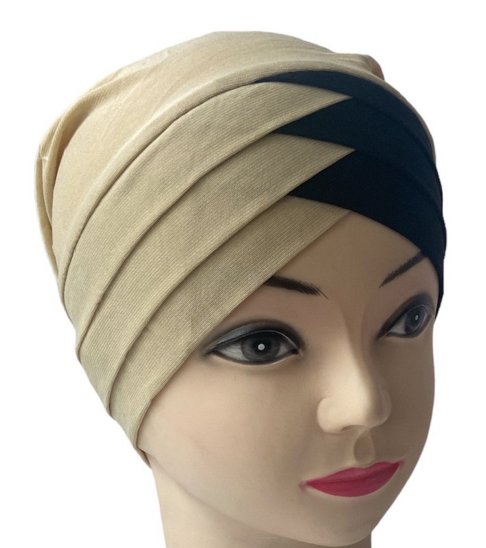 Turban bonnet croise bicolore femme moderne - Couleur Sable et Noir