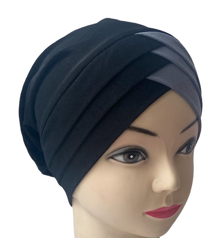 Ce turban bicolore plissé à l'avant, léger et très facile à porte va donner une touche d'élégance et de vitalité a votre tenu, en quelques secondes. Il est disponible en plusieurs couleurs.