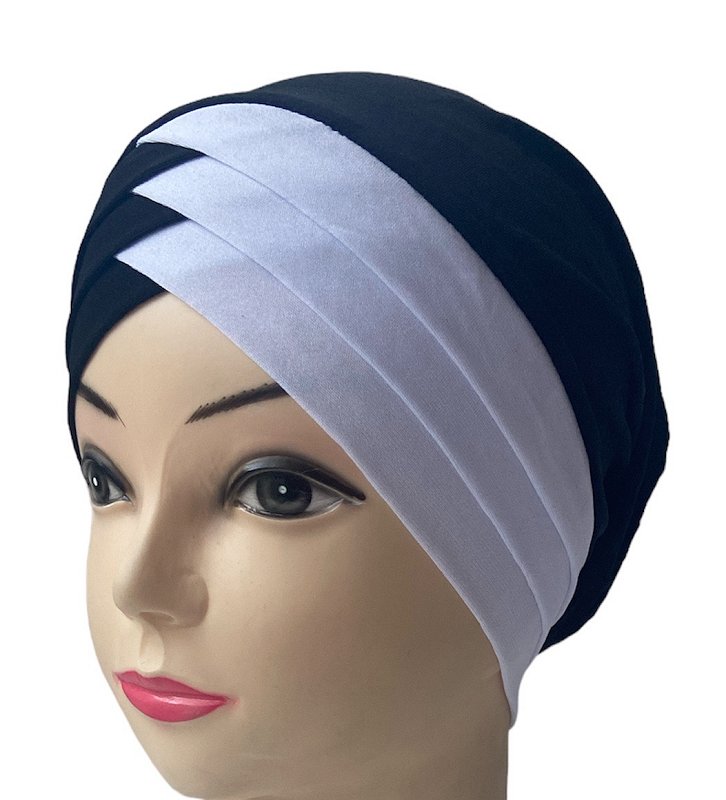 Turban bonnet croisé bicolore femme moderne - Couleur Noir et Blanc Vetement & Accessoire