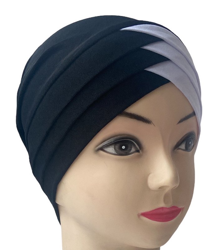 Turban bonnet croise bicolore femme moderne - Couleur Noir et Blanc