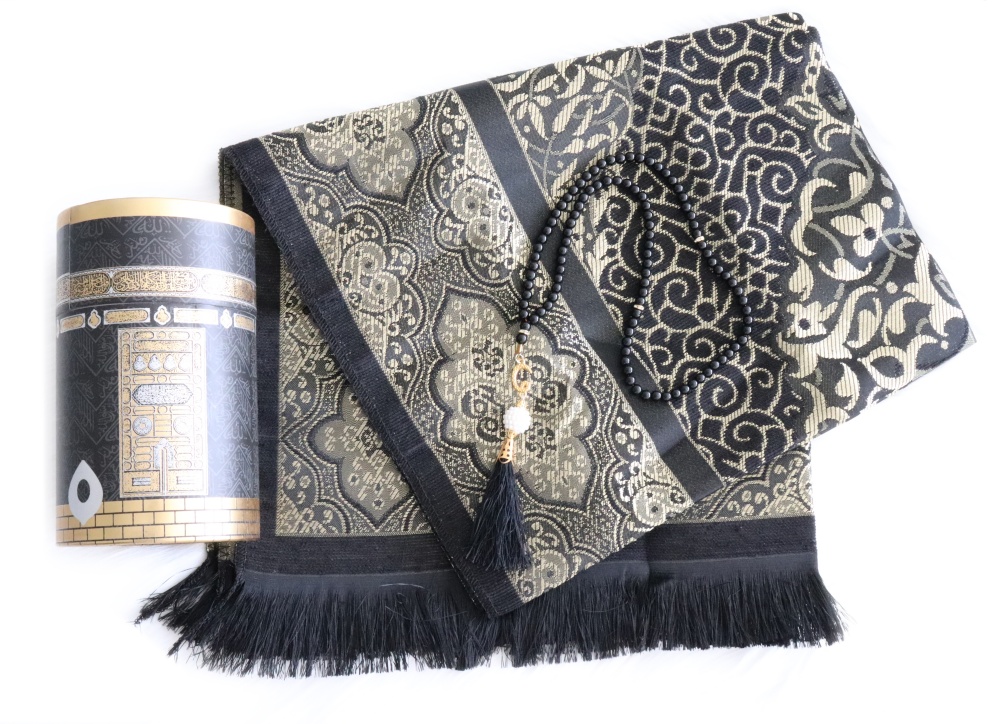 Coffret Cadeau Musulman pour la Prière et les invocations : Tapis et chapelet Noir - REF. 39057 (12.90 €) - En Promotion à 9.90 €