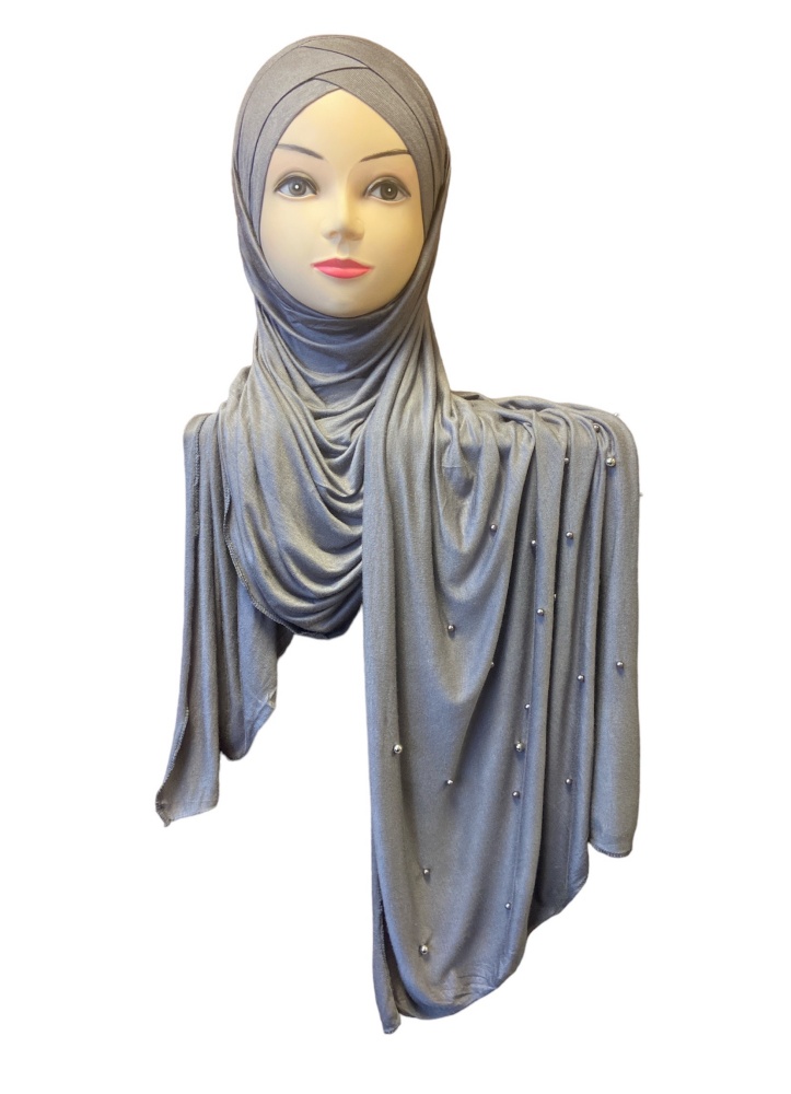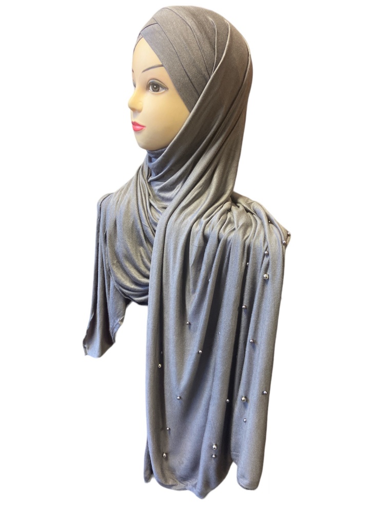 Hijab 1 pièce couleur taupe perlé sur le bonnet avec motifs cuivrés - REF. 22092 (6.90 €)