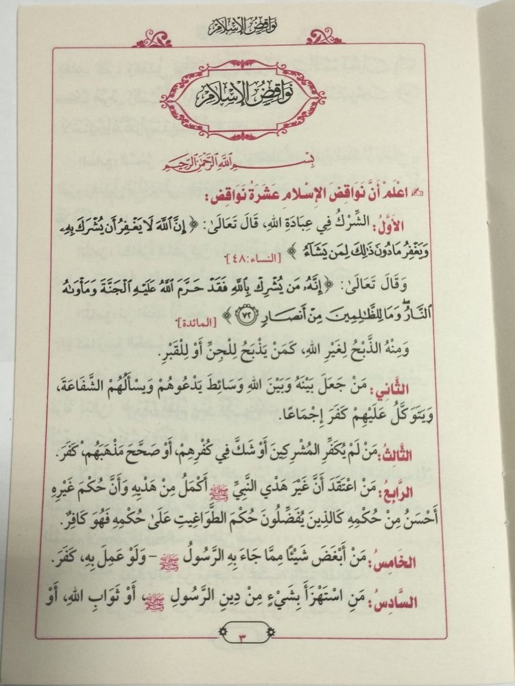 متن نواقض الإسلام ومتن شروط لا إله إلا الله للإمام محمد بن عبد الوهاب