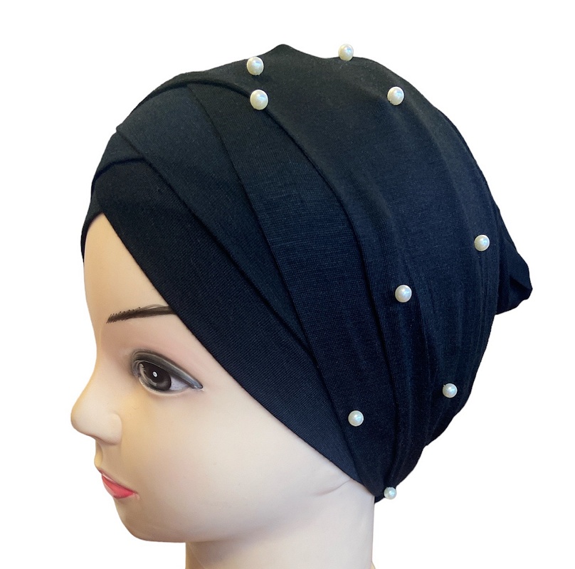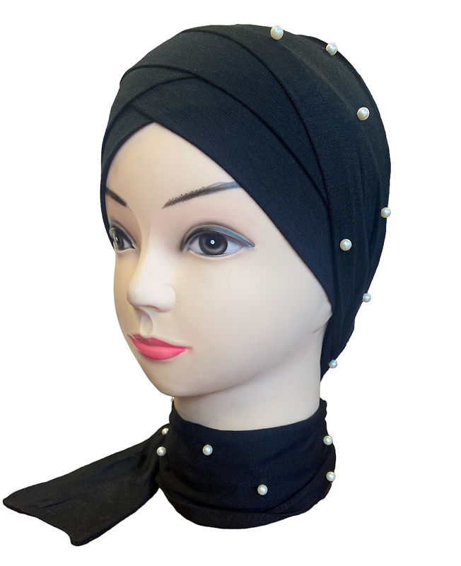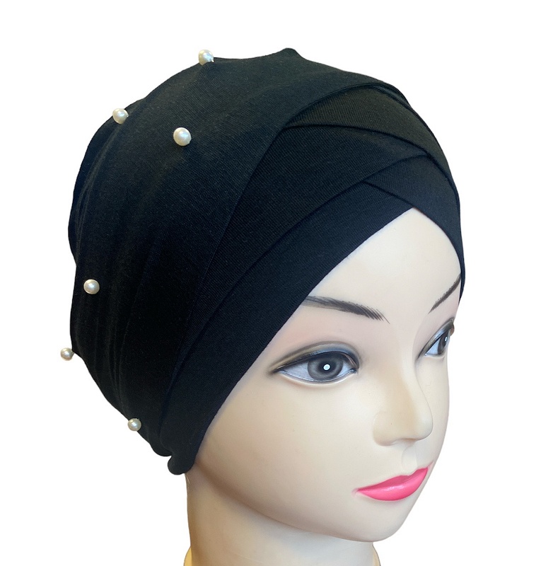 Bonnet turban croise devant avec bandelette perle a enrouler pour femme - Plusieurs couleurs disponibles