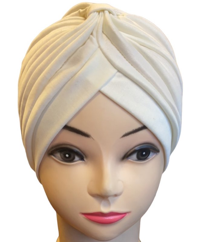 Turban bonnet croisé bicolore femme moderne - Couleur Blanc et beige - REF. 39982 (3.90 €)