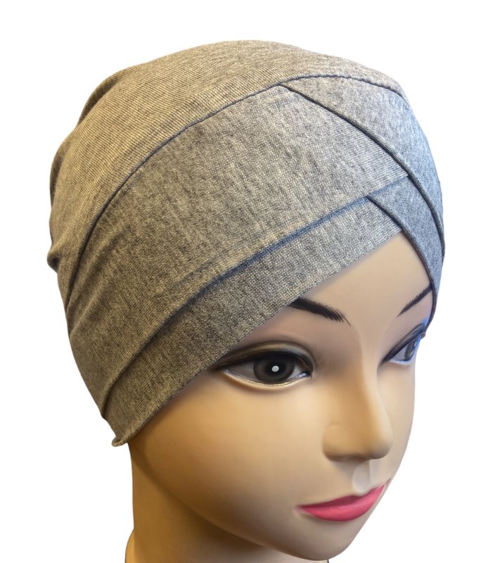 Turban bonnet croisé bicolore femme moderne - Couleur Beige et Taupe - REF. 40002 (3.90 €)