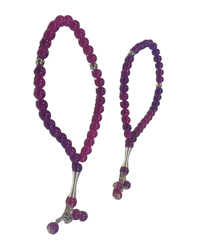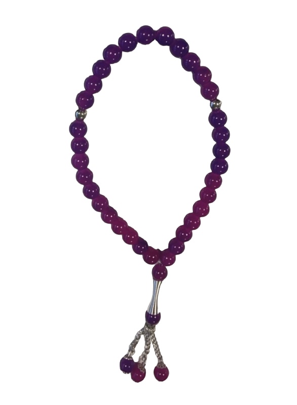 Chapelet (Subha) de luxe a 33 grosses perles de couleur Mauve violet avec petites perles argentees