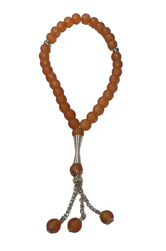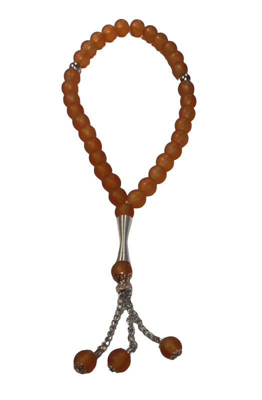 Chapelet (Sebha) de luxe à 33 grosses perles de couleur Ambre avec petites perles argentées.