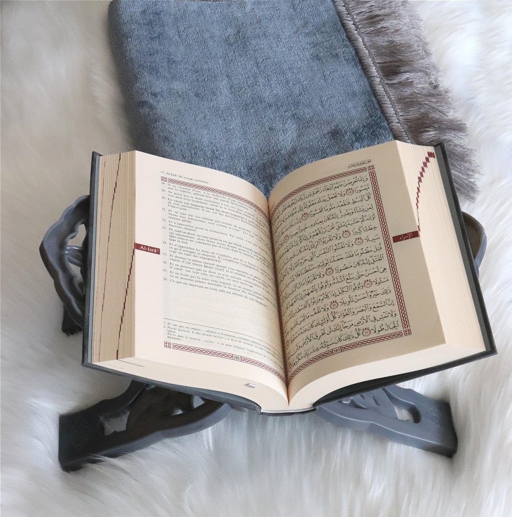 Le Noble Coran Bilingue français-arabe - Edition de luxe couverture cartonnée en cuir couleur Argentée - Avec index des sourates - REF. 39527 (25.90 €) - En Promotion à 23.90 €