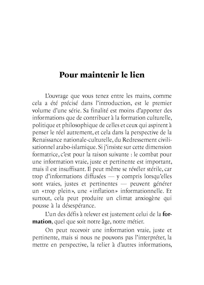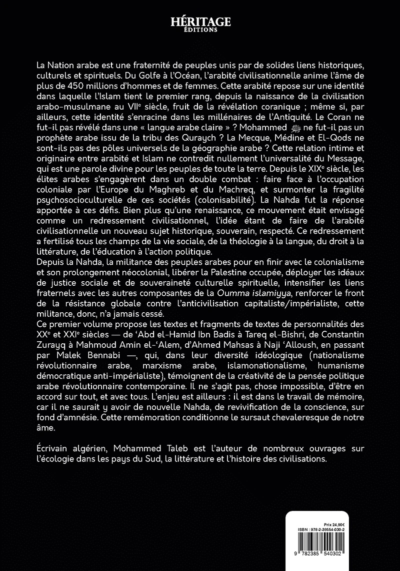 Ce livre, qui est le premier tome d’une série, est entièrement consacré à la valorisation du patrimoine éthico-philosophique et théorico-politique élaboré, depuis la seconde moitié du XIXe siècle, dans le cadre de la résistance des sociétés arabo-musulmanes, du Maghreb au Machreq — du Golfe à l’Océan, pour utiliser une formule devenue traditionnelle —, à la pénétration colonialiste occidentale, et à son prolongement néocolonial. Cette résistance s’est notamment exprimée, intellectuellement, politiquement et culturellement, à travers le mouvement de la Nahda, porté par une fraction des élites arabes. La Nahda, autrement dit le processus de réanimation de la nation arabo-musulmane, était envisagée comme un redressement civilisationnel. C’est d’ailleurs le sens de la racine arabe NHD, d’où provient le terme, et qui signifie justement « se lever », « se dresser », « être d’attaque ». On comprend bien la portée dynamique de ce mouvement. Multiforme, la Nahda s’est manifestée sur les terrains de la religion/spiritualité (théologie dogmatique, exégèse du Coran, sciences juridiques, soufisme), des beaux-arts et des belles-lettres (langue arabe, poésie, roman, musique, etc.), de la vie sociale (presse et journalisme, éducation, science, etc.), sans oublier un terrain essentiel, celui de la lutte anti-impérialiste et anticolonialiste. L’oeuvre intellectuelle et culturelle de la Nahda n’est pas séparable, bien évidemment, des mouvements sociaux, des combats politiques, des affrontements armés contre le colonialisme qui mobilisèrent les sociétés arabes.