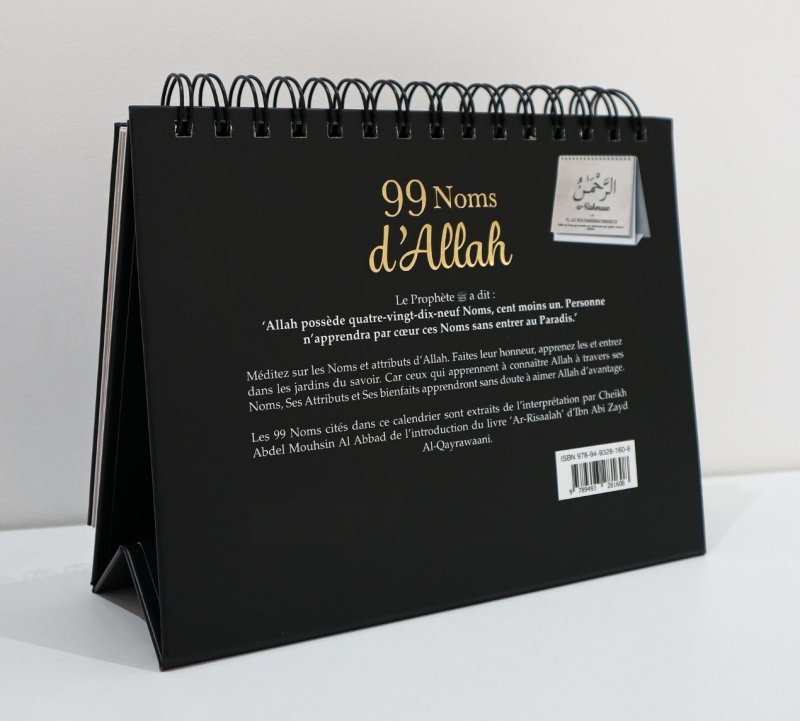Découvrez les 99 Noms d'Allah et leur signification à travers ce calendrier. Méditez sur Ses attributs et entrez dans les jardins du savoir. Grâce à ces Noms, vous pourrez apprendre à aimer Allah davantage et ainsi entrer au Paradis.