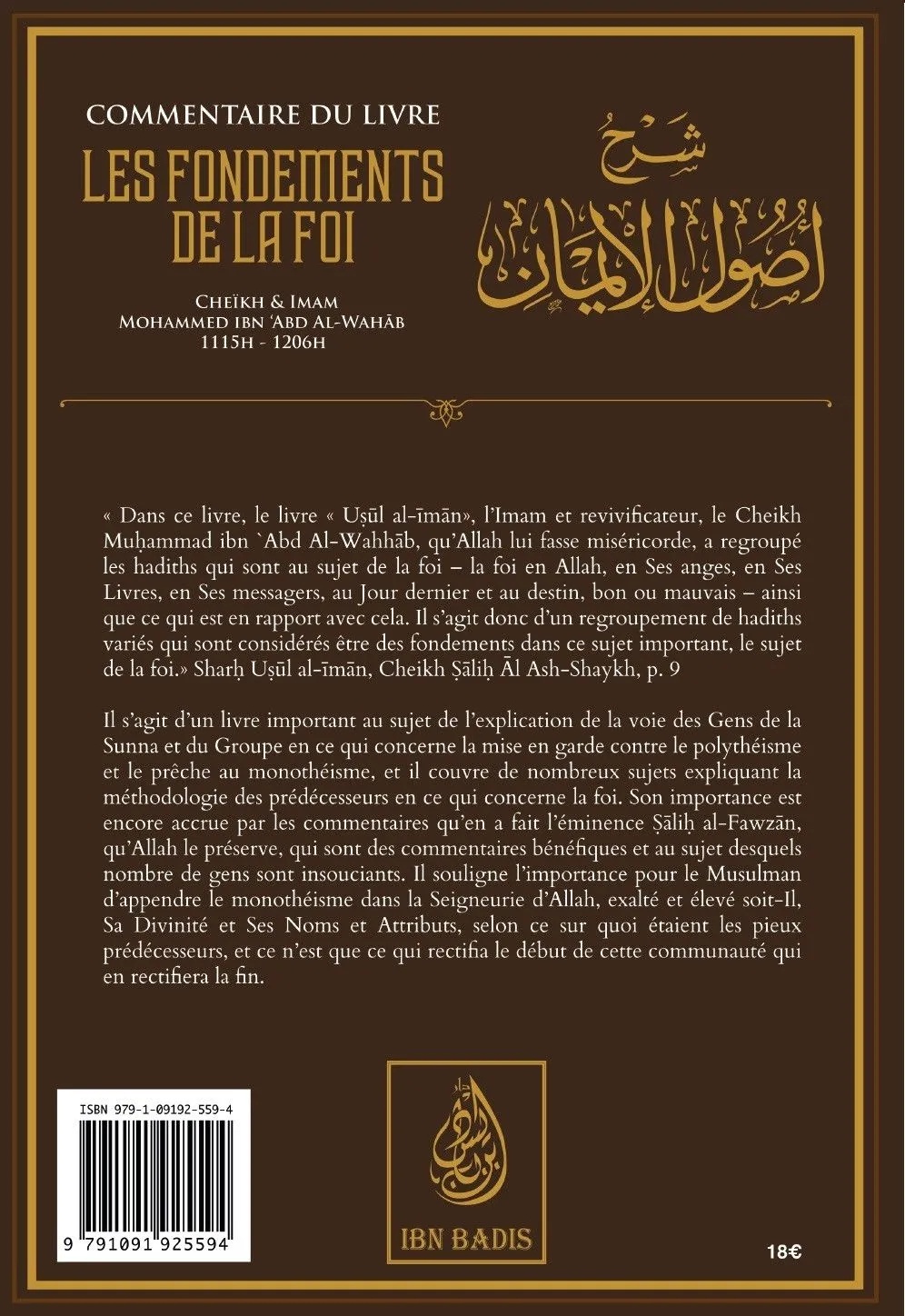 « Dans ce livre, le livre « Uṣūl al-īmān»,l’Imam et revivificateur, le Cheikh Muḥammad ibn `Abd Al-Wahhāb, qu’Allah lui fasse miséricorde, a regroupé les hadiths qui sont au sujet de la foi – la foi en Allah, en Ses anges, en Ses Livres, en Ses messagers, au Jour dernier et au destin, bon ou mauvais – ainsi que ce qui est en rapport avec cela. Il s’agit donc d’un regroupement de hadiths variés qui sont considérés être des fondements dans ce sujet important, le sujet de la foi.» Sharḥ Uṣūl al-īmān,Cheikh Ṣāliḥ Āl Ash-Shaykh, p. 9