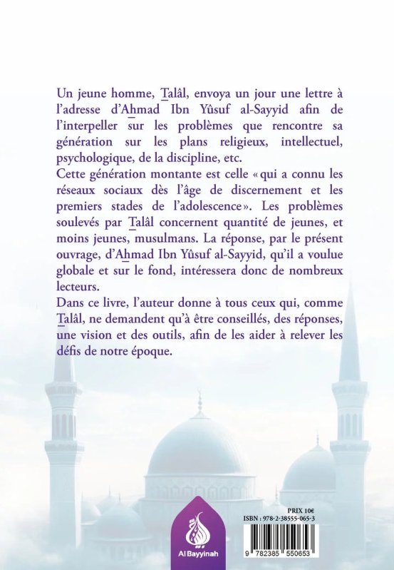 "À la génération montante" par Ahmad Ibn Yûsuf al-Sayyid est une réponse profonde aux préoccupations de la jeunesse musulmane contemporaine face aux défis des réseaux sociaux et d'autres influences modernes. À travers les lettres de Talâl, l'auteur adresse des conseils et des stratégies pour surmonter les obstacles sociaux, intellectuels et psychologiques, encouragent les jeunes à une réforme personnelle et communautaire positive.