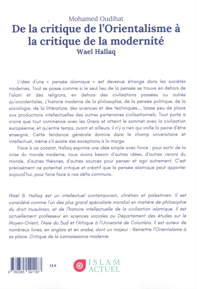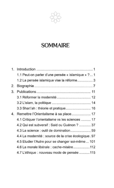 Cet ouvrage interroge la notion de "pensée islamique" souvent marginalisée dans les sociétés modernes, où la philosophie et les sciences sont dominées par un paradigme eurocentrée. Il soutient que, pour surmonter la crise actuelle du monde moderne, il est crucial de redécouvrir et d'intégrer d'autres visions du monde, notamment celles issues de la pensée islamique, qui peuvent offrir des réponses novatrices aux défis contemporains.