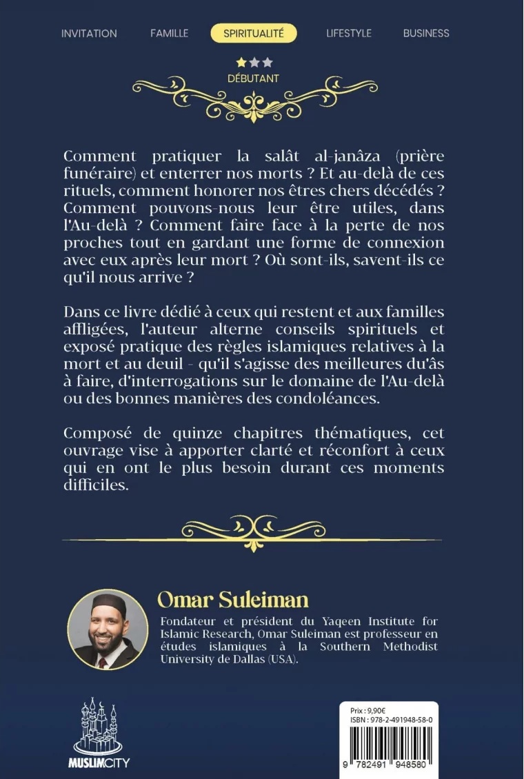 Dans ce livre dédié à ceux qui restent et aux familles affligées, l’auteur alterne conseils spirituels et exposé pratique des règles islamiques relatives à la mort et au deuil – qu’il s’agisse des meilleures du’âs à faire, d’interrogations sur le domaine de l’Au-delà ou des bonnes manières des condoléances.