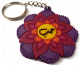 Pendentifs / porte-clés en bois de forme carrée sculpté d'arabesques et pompon en sabra de couleur violette - REF. 15678 (3.00 €)