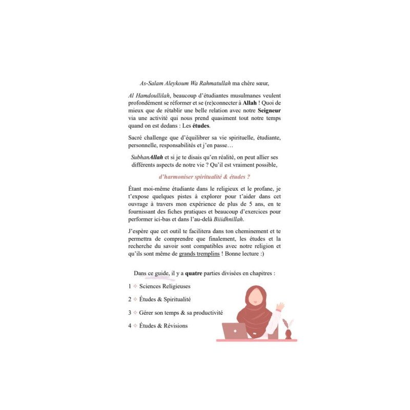 Avec des conseils d'organisation, des exercices inspirants et des stratégies pour intégrer la foi dans la vie quotidienne, ce carnet t’aide à transformer tes études en un moyen d'atteindre l’épanouissement dans ce monde et l'au-delà.