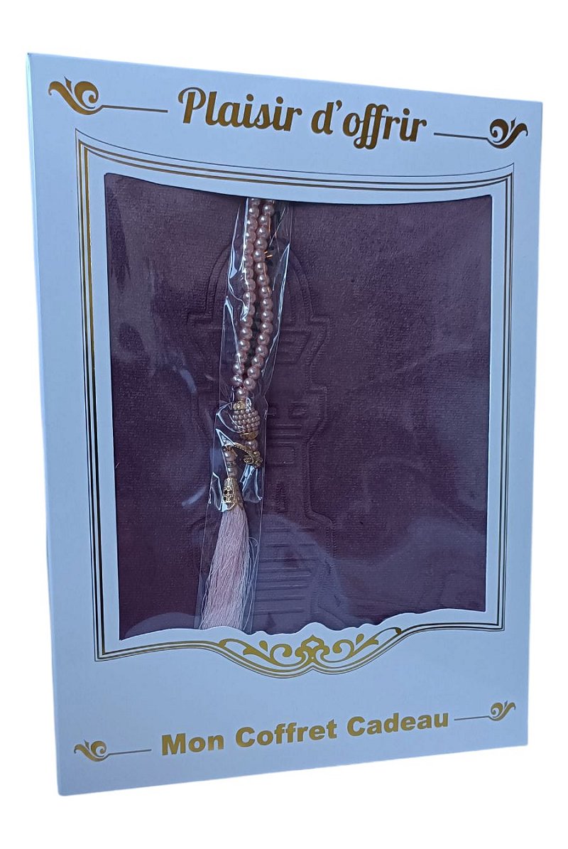 Mon coffret cadeau - Plaisir d'offrir : Tapis de prière musulman avec sa boite et chapelet - Couleur mauve Deco & Cadeau
