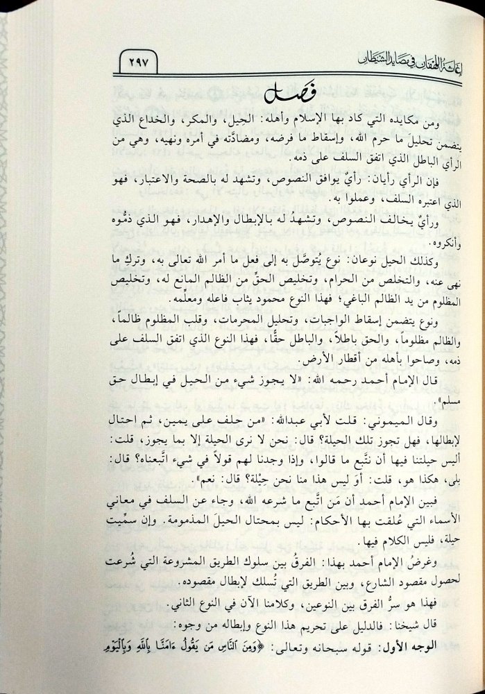 من أهم مصنفات العلامة ابن القيم رحمه الله كتابه " إغاثة اللهفان في مصايد الشيطان " ويدور الكتاب حول موضوعين رئيسين