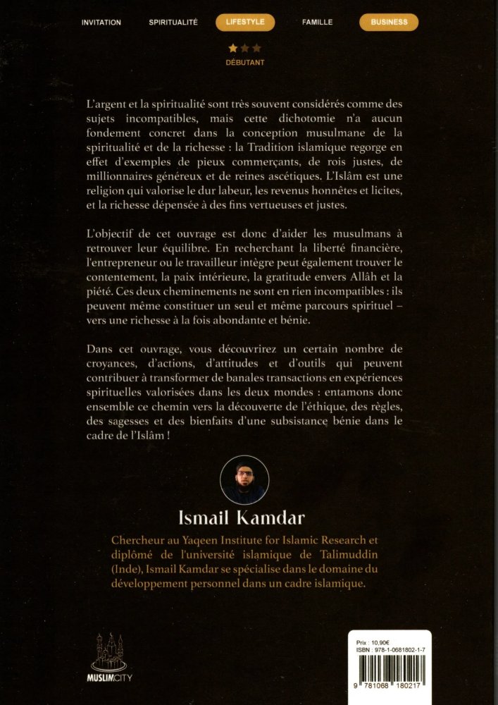 Dans cet ouvrage, vous découvrirez un certain nombre de croyances, d'actions, d'attitudes et d'outils qui peuvent contribuer à transformer de banales transactions en expériences spirituelles valorisées dans les deux mondes : entamons donc ensemble ce chemin vers la découverte de l'éthique, des règles, des sagesses et des bienfaits d'une subsistance bénie dans le cadre de l'Islâm !