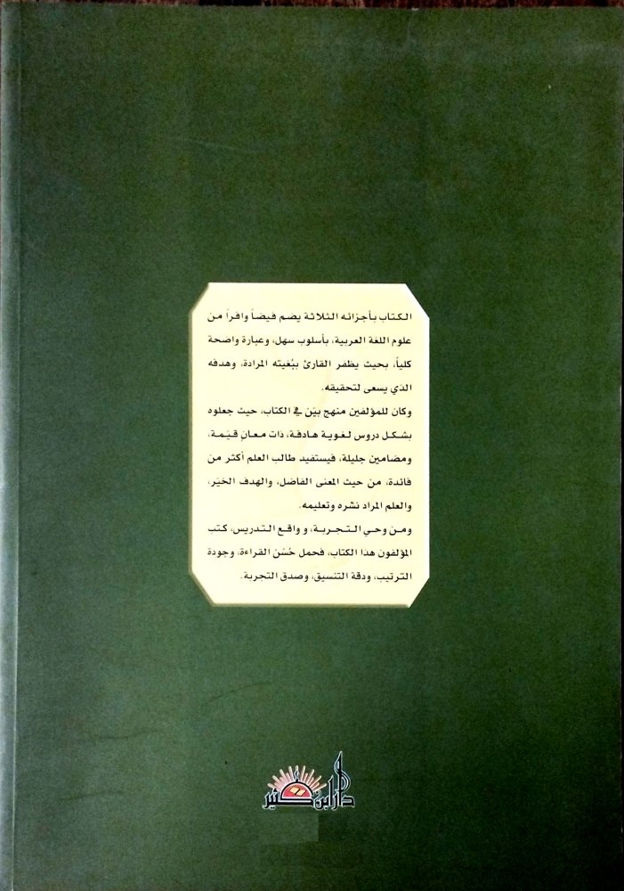 الكتاب بأجزائه الثلاثة يضم فيضاً وافراً من علوم اللغة العربية، بأسلوب سهل، وعبارة واضحة كلياً، بحيث يظفر القارئ ببغيته المرادة، وهدفه الذي يسعى لتحقيقه.