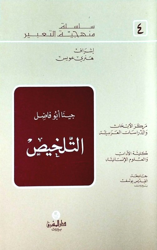 "تساعدك منهجيّة التعبير على التعرّف إلى كلّ طاقاتك في التنظيم والتركيب في أثناء التعامل، والتصرّف في حالات تواصليّة محدّدة، وذلك من خلال مراقبة النصوص واكتشافها سمعيًّا وبصريًّا أوّلاً، ومن خلال التعبير شفهيًّا وكتابيًّا ثانيًّّا. وأمّا التلخيص فيعني أن تضغط أبرز ما جاء في النصّ المسموع أو المكتوب مراعيًّا عدد الكلمات المطلوب منك".