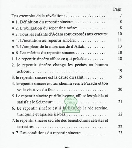 Le Repentir Sincère à la lumière du Saint Coran et des hadiths authentiques - REF. 15481 (5.00 €)