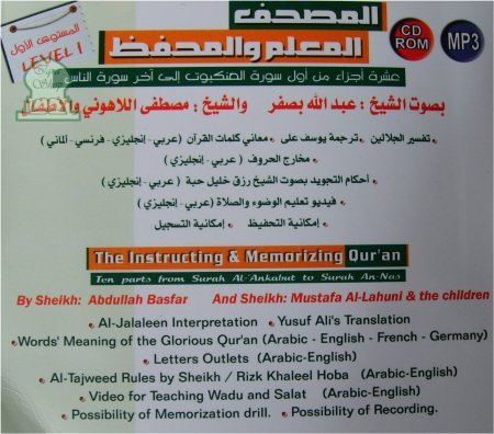 Cédérom éducatif pour les enfants, contenant les règles à suivre lors de la récitation ainsi que les explications des dix parties de Sourate Al'Ankabout jusqu'à Sourate An-Nas. Récitation du Cheikh suivie de la récitation d'un groupe d'enfant.